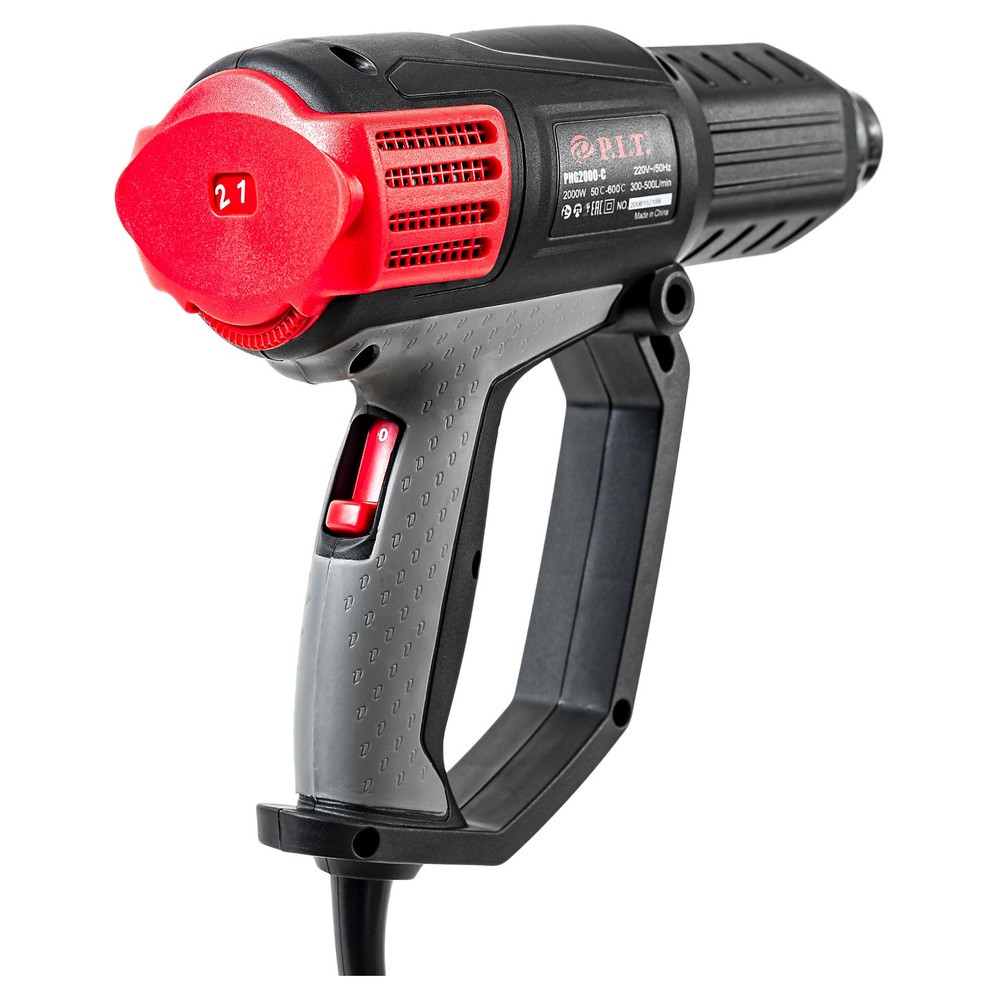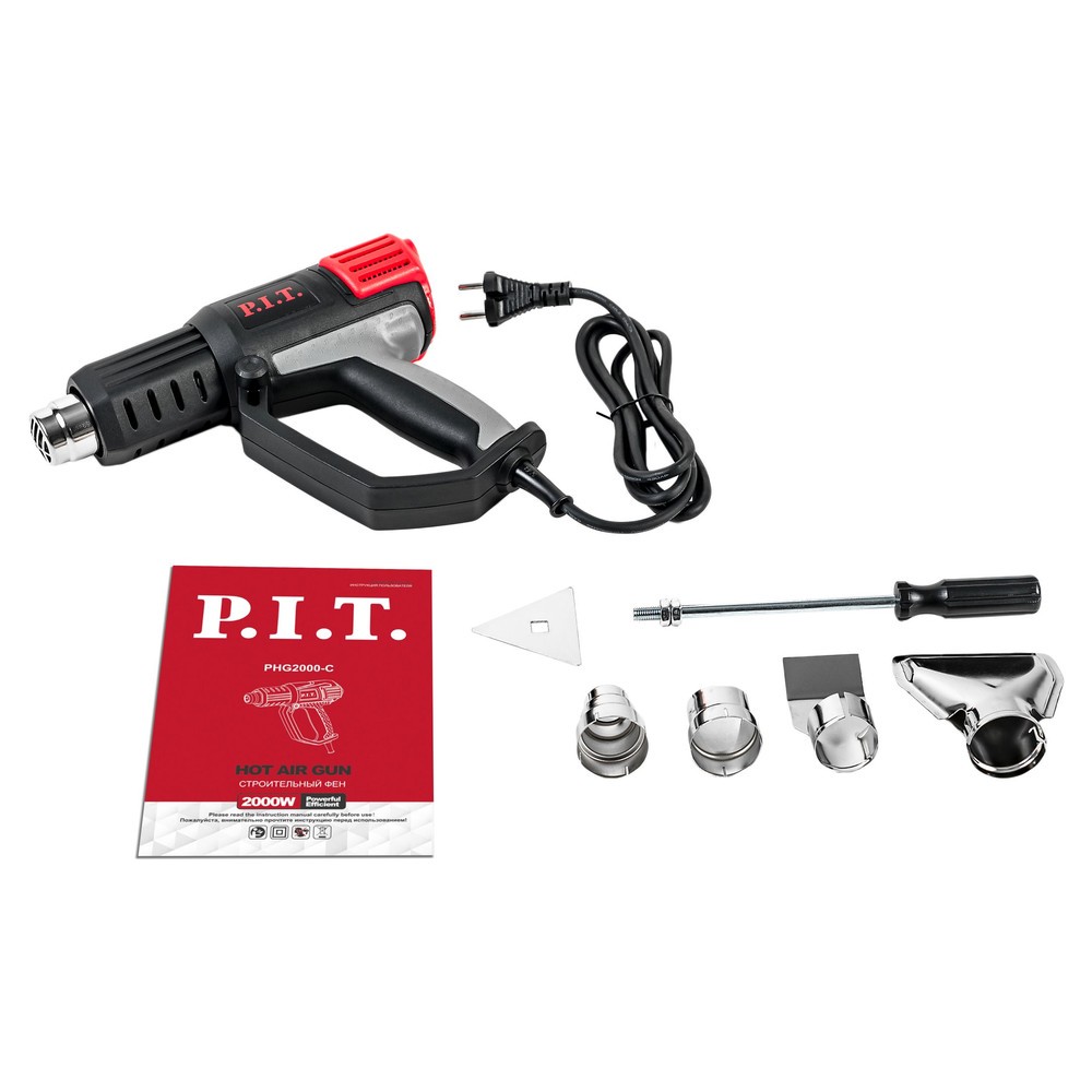 Фен P.I.T. электрический PHG 2000-C МАСТЕР (2кВт,50-600С,три положения потока воздуха,насадки КЕЙС)(