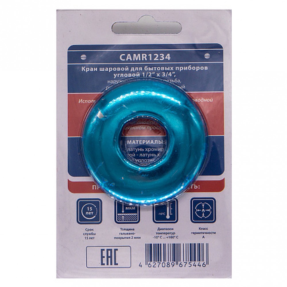 Кран шар. д/быт. прибор. угл. 1/2quot;х3/4quot; ш/ш с отражат. бабочка, удл. резьба, хром. CTM CAMR1234