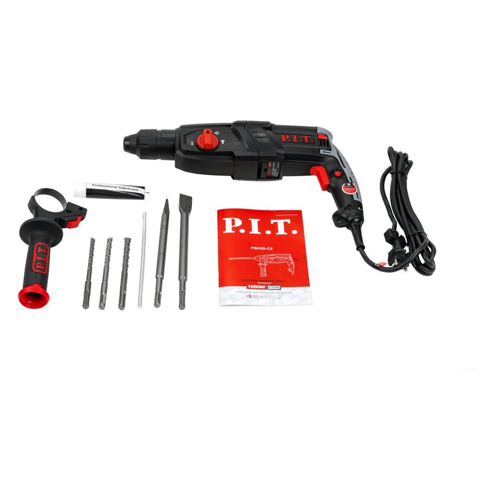 Перфоратор P.I.T. PBH28-C5 (3-реж.гор.1050Вт.3,2дж.SDS+ пласт.кейс,3 бура,зуб,макс.бур 28мм)